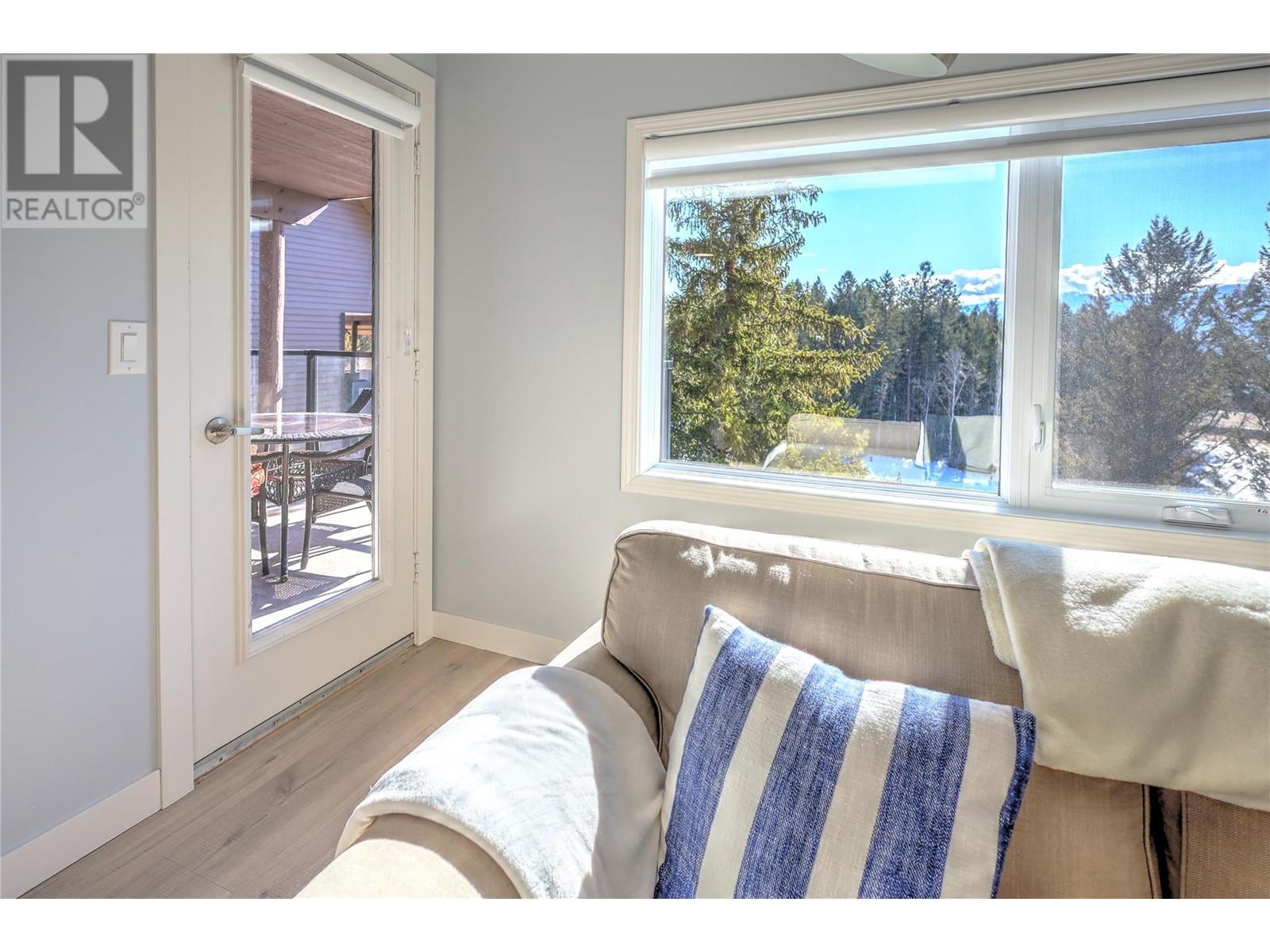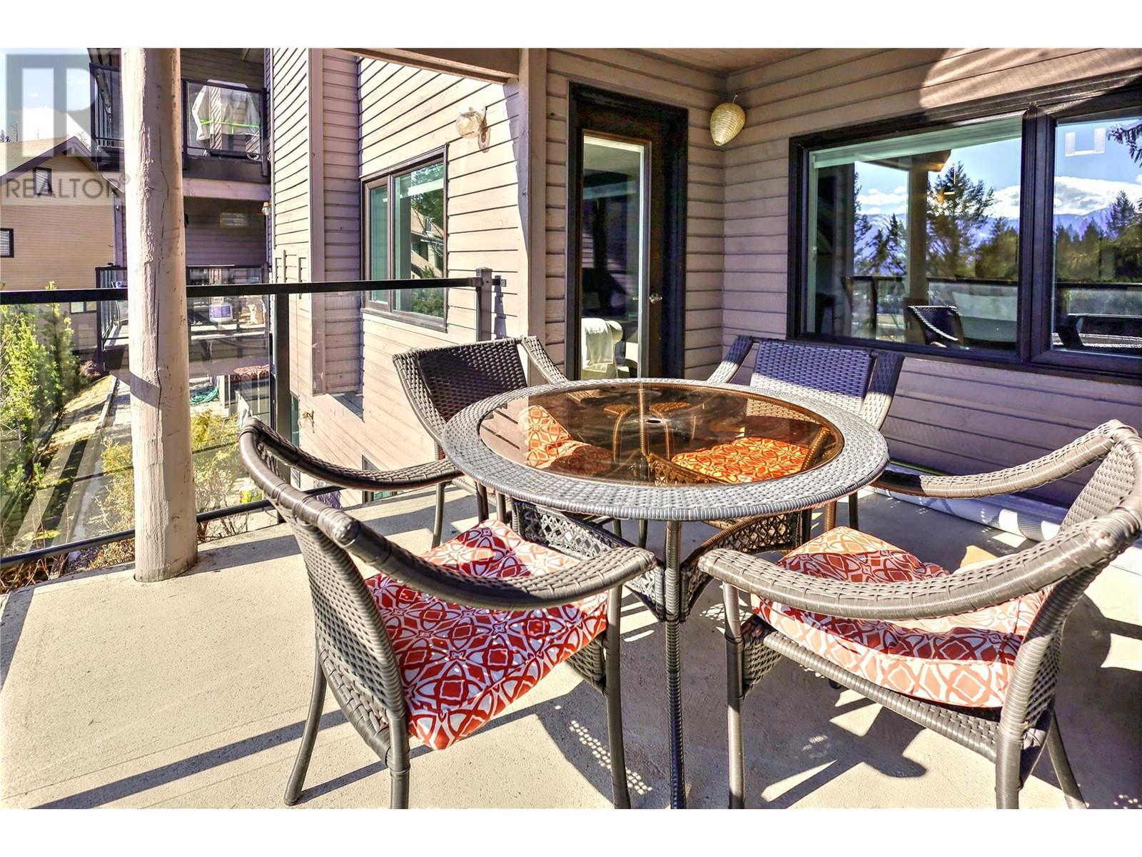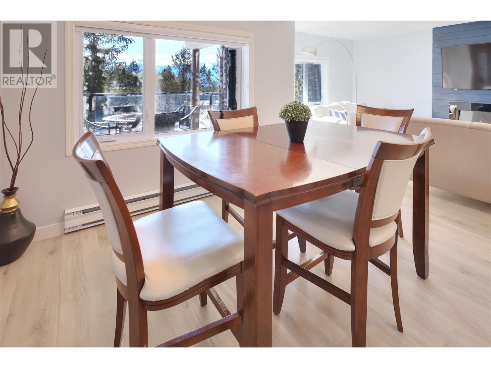 Charming, modern, corner condo with stunning views, blending elegance with comfort. Updated throughout with contemporary finishes, it features a ground-level entrance and a convenient access driveway to the front door to drop off your groceries and open parking. The main floor includes a bright living room, dining area, well-appointed kitchen, a 3-piece bathroom, and a covered balcony. Imagine relaxing by the electric fireplace, which adds a touch of warmth, colour and class with just the flip of a switch. Sit and sip your coffee while gazing at the stunning mountain and golf course views from the balcony and living room. Catch an afternoon movie by drawing the stylish window blinds. The lower level has two cozy bedrooms, an additional 3-piece bathroom, and a family/recreational room currently set up for extra sleeping space. The primary bedroom is bright with a large window, while the guest bedroom is spacious. Both bedrooms have open closets and walk-out doors to the covered deck. The basement hallway features a bookshelf with a WiFi door lock that opens to additional storage! LVP flooring throughout the entire condo. Conveniently located between Radium Hot Springs and Invermere, with easy highway access. Close to the Radium Golf Course, Hot Pools, and village amenities like restaurants, shops, and gas stations. Experience this delightful condo designed for comfortable living. Make it your new home today! (id:4069)