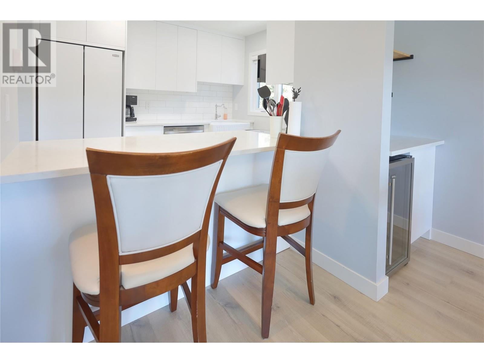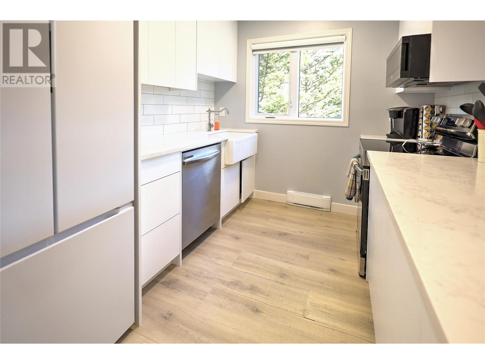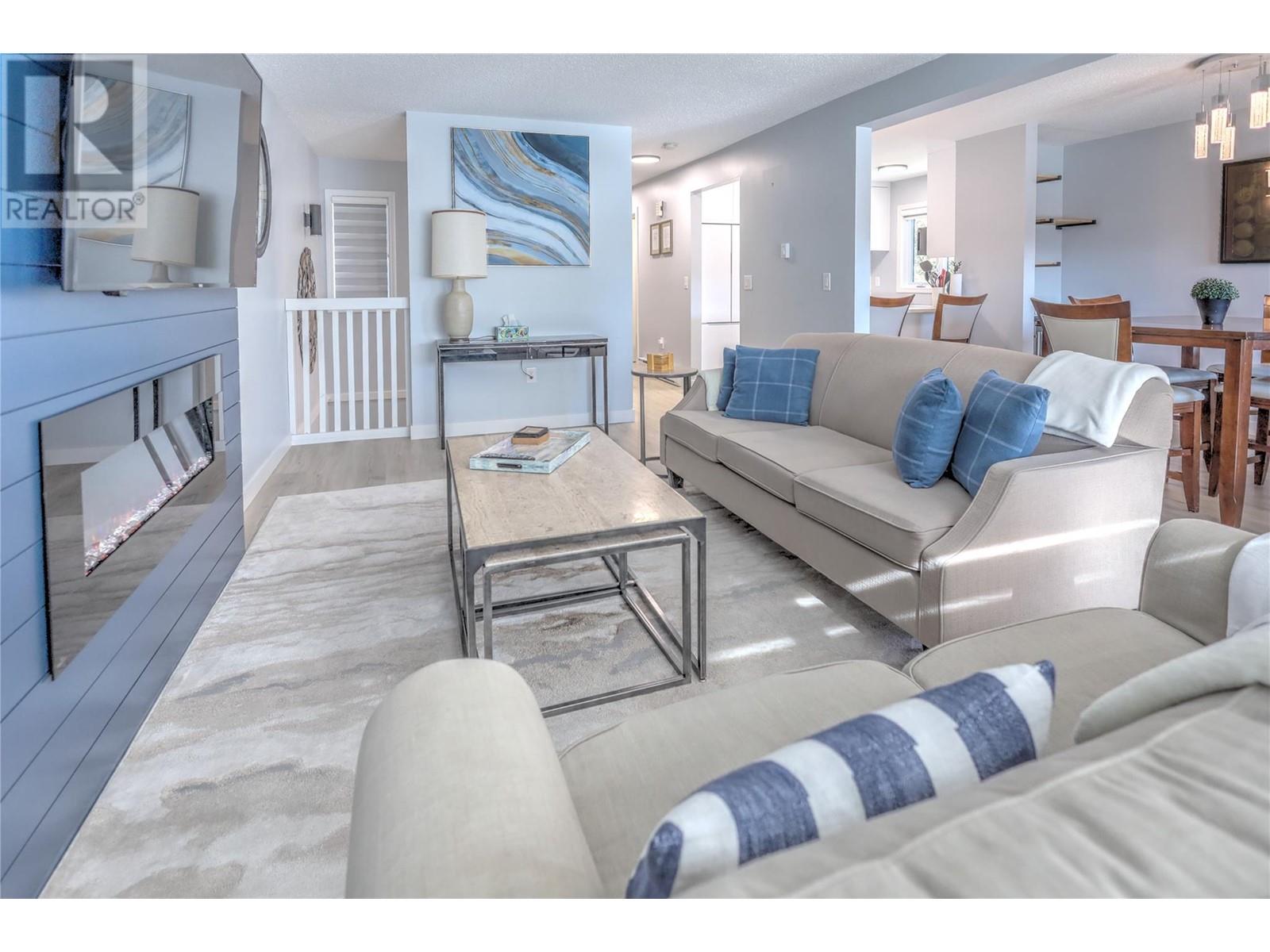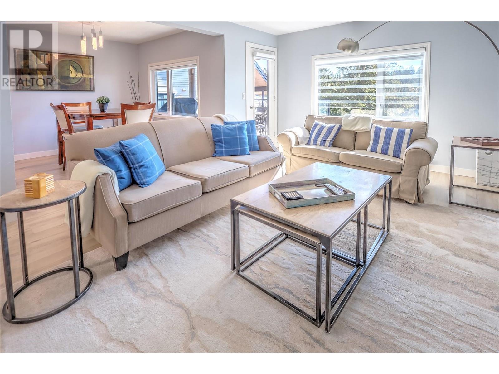 Charming, modern, corner condo with stunning views, blending elegance with comfort. Updated throughout with contemporary finishes, it features a ground-level entrance and a convenient access driveway to the front door to drop off your groceries and open parking. The main floor includes a bright living room, dining area, well-appointed kitchen, a 3-piece bathroom, and a covered balcony. Imagine relaxing by the electric fireplace, which adds a touch of warmth, colour and class with just the flip of a switch. Sit and sip your coffee while gazing at the stunning mountain and golf course views from the balcony and living room. Catch an afternoon movie by drawing the stylish window blinds. The lower level has two cozy bedrooms, an additional 3-piece bathroom, and a family/recreational room currently set up for extra sleeping space. The primary bedroom is bright with a large window, while the guest bedroom is spacious. Both bedrooms have open closets and walk-out doors to the covered deck. The basement hallway features a bookshelf with a WiFi door lock that opens to additional storage! LVP flooring throughout the entire condo. Conveniently located between Radium Hot Springs and Invermere, with easy highway access. Close to the Radium Golf Course, Hot Pools, and village amenities like restaurants, shops, and gas stations. Experience this delightful condo designed for comfortable living. Make it your new home today! (id:4069)