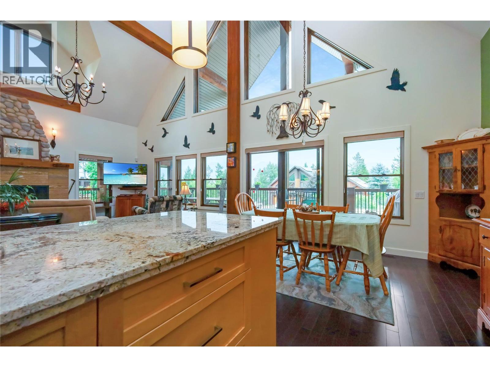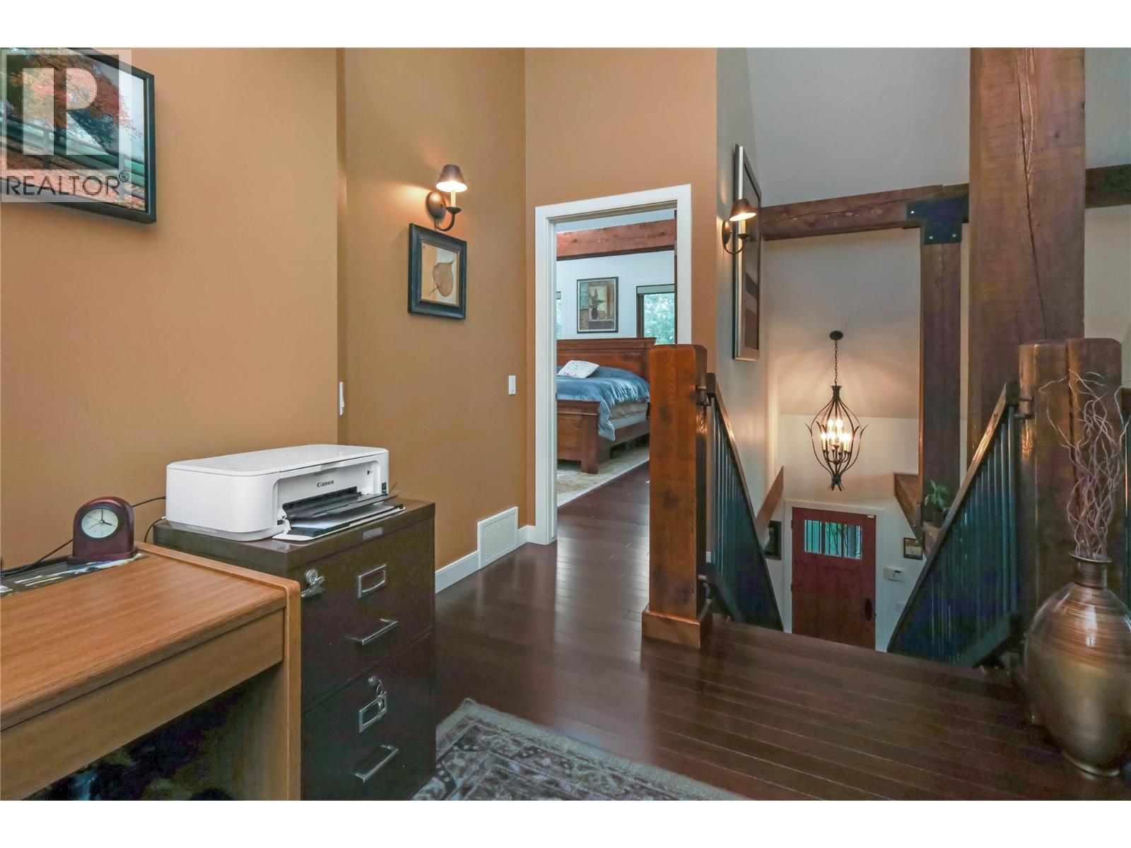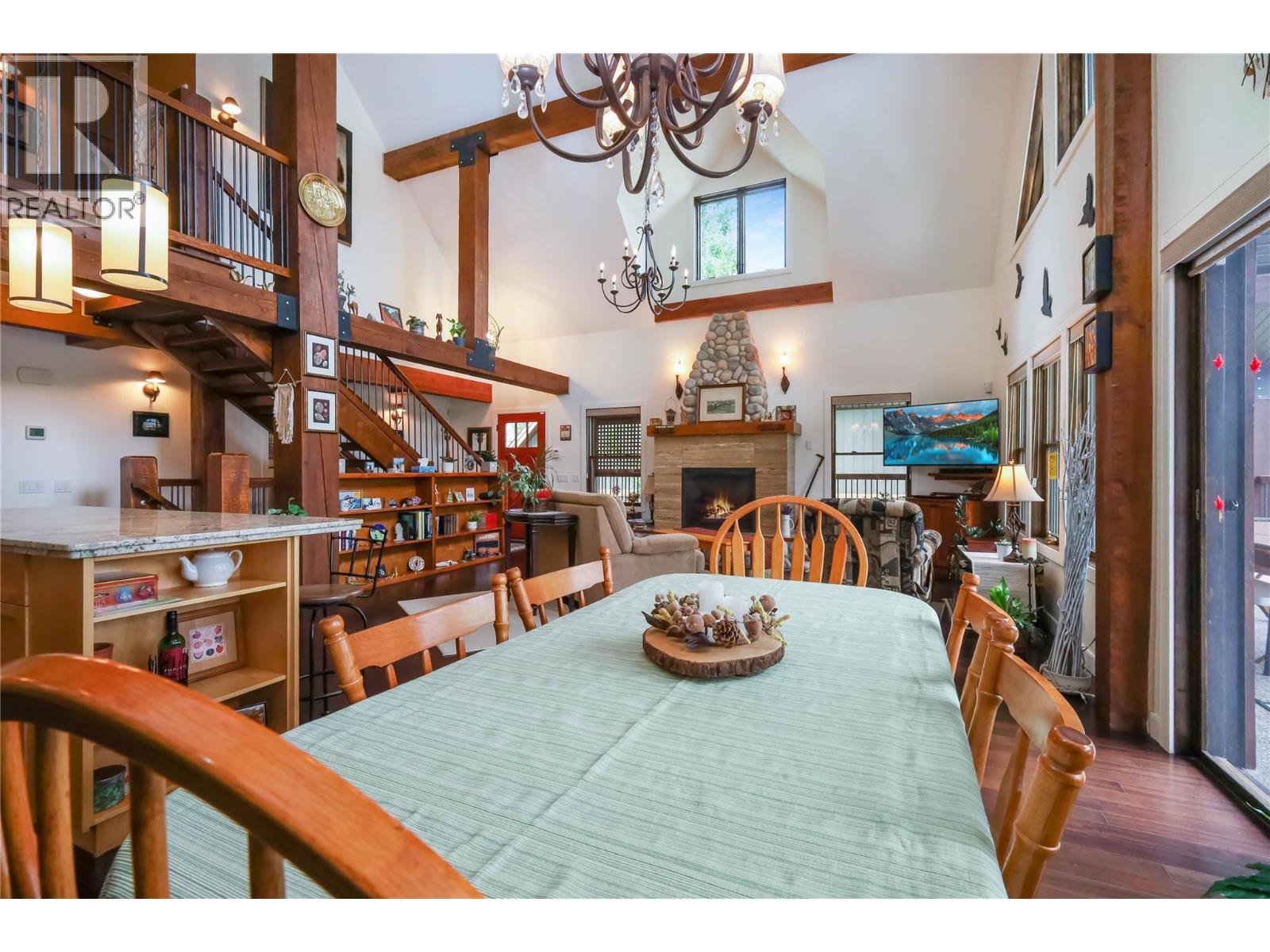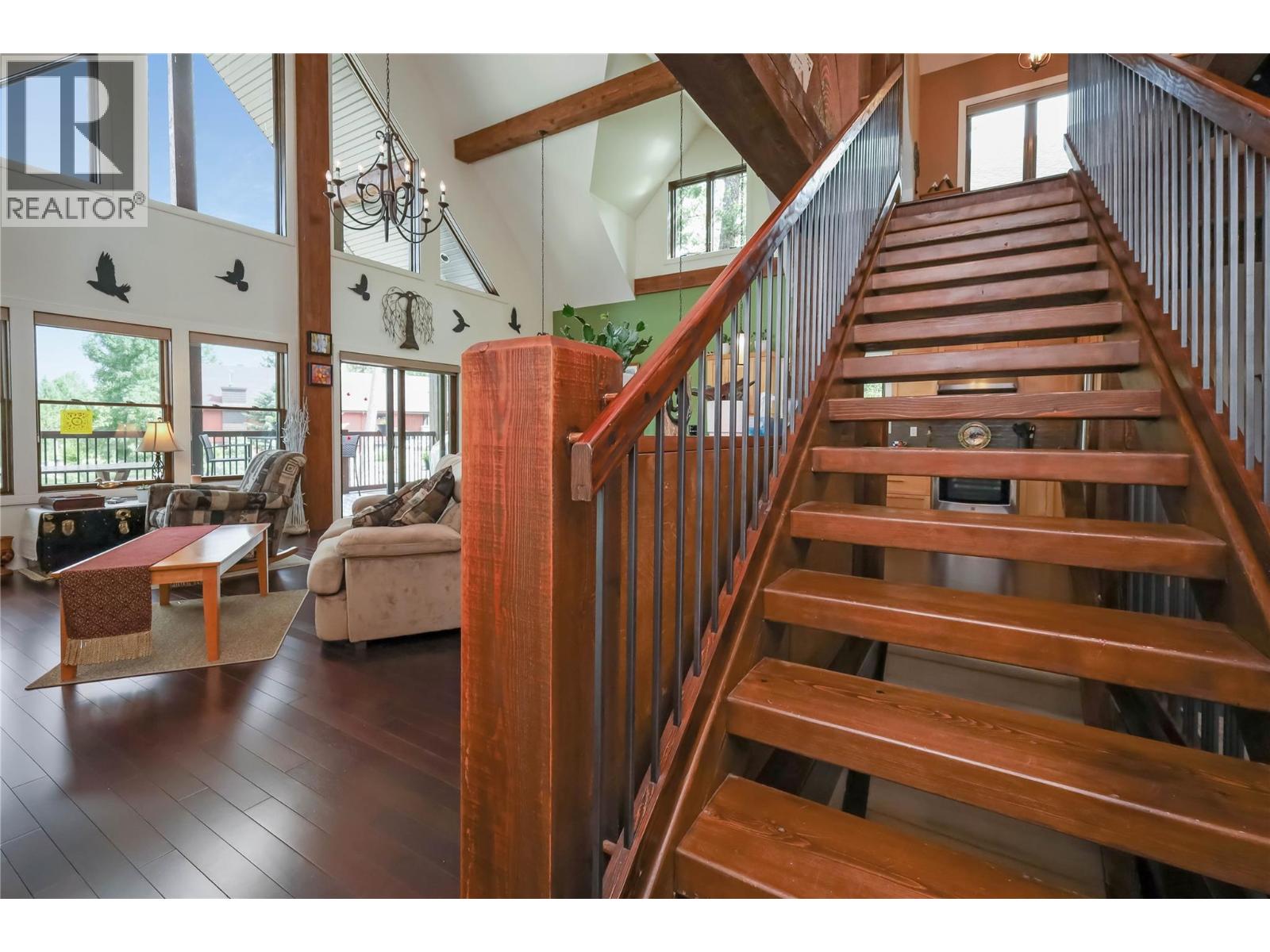 This residence boasts a distinctive post-and-beam design, offering both beauty and individuality rarely found in conventional homes. The expansive, covered front deck provides an ideal setting for entertaining guests while enjoying panoramic views of the Rocky Mountains. Designed as an exceptional mountain retreat, the home emphasizes comfort, connectivity, and versatility. Features include soaring vaulted ceilings, elegant hardwood flooring, a chef-inspired kitchen equipped with granite countertops, stainless appliances, and a large island. The main floor’s open layout seamlessly transitions into a great room highlighted by a striking stone fireplace, creating an inviting space for family gatherings or relaxed evenings. The loft level presents a dedicated landing suitable for a sunlit home office or creative workspace, leading to a tranquil primary suite complete with vaulted ceilings and a private balcony. The spa-like, 5-piece ensuite features a jet tub promoting year-round wellness. There’s a beautiful main-floor bedroom with an ensuite. More adaptable spaces provide privacy and flexibility for family members or guests, while the lower level accommodates hobbies, fitness activities & a soothing sauna. In-floor heating and an appointed mudroom further enhance the seamless integration between indoor and outdoor living. Ideal for retirees, active families, or individuals seeking a refined balance of luxury and practicality, and all within a dynamic and picturesque community. (id:4069)