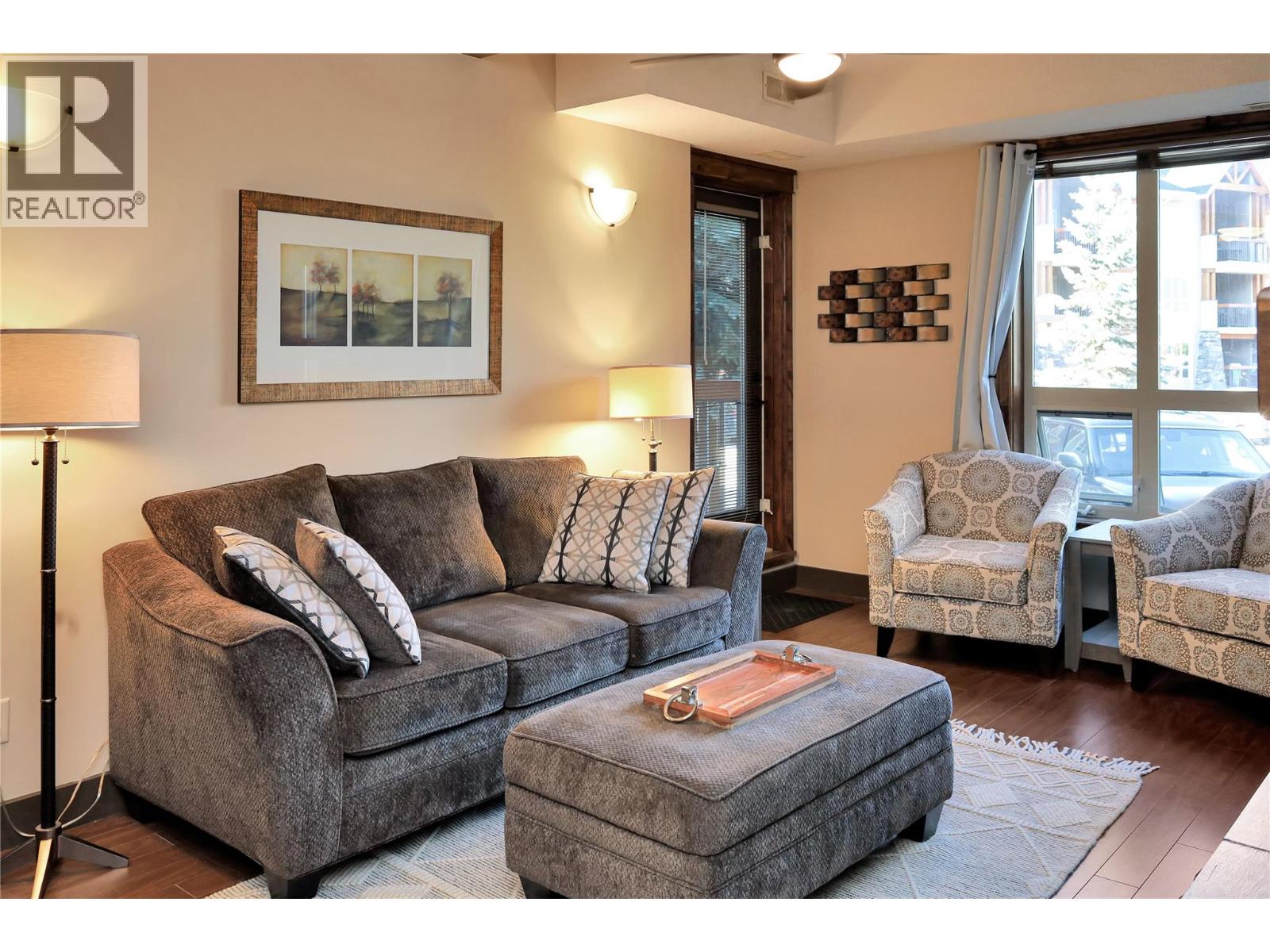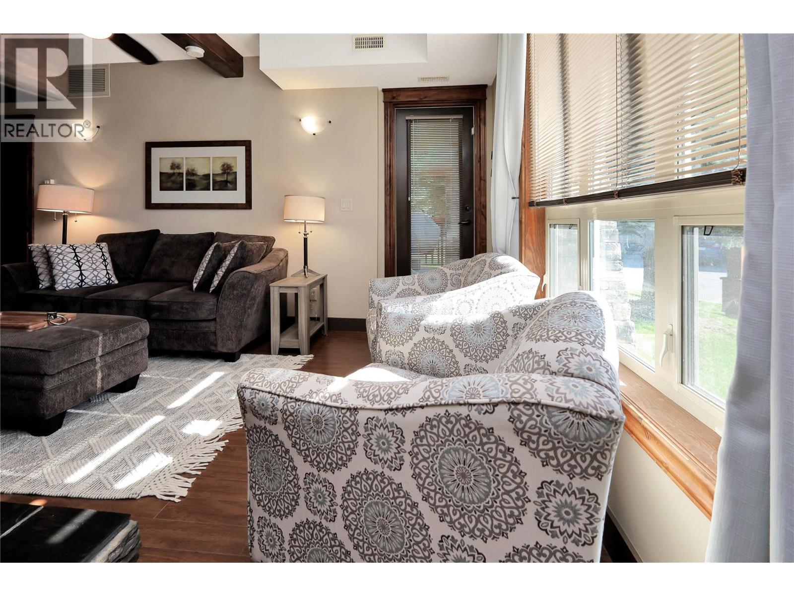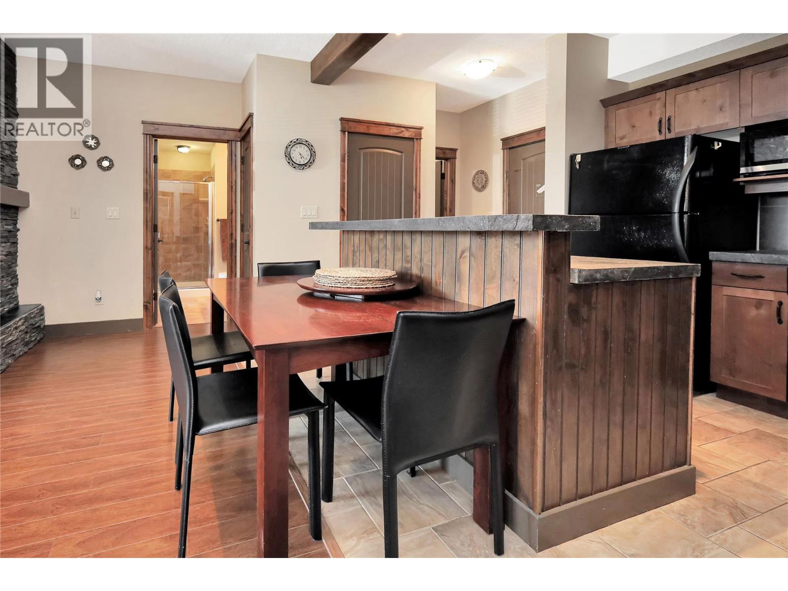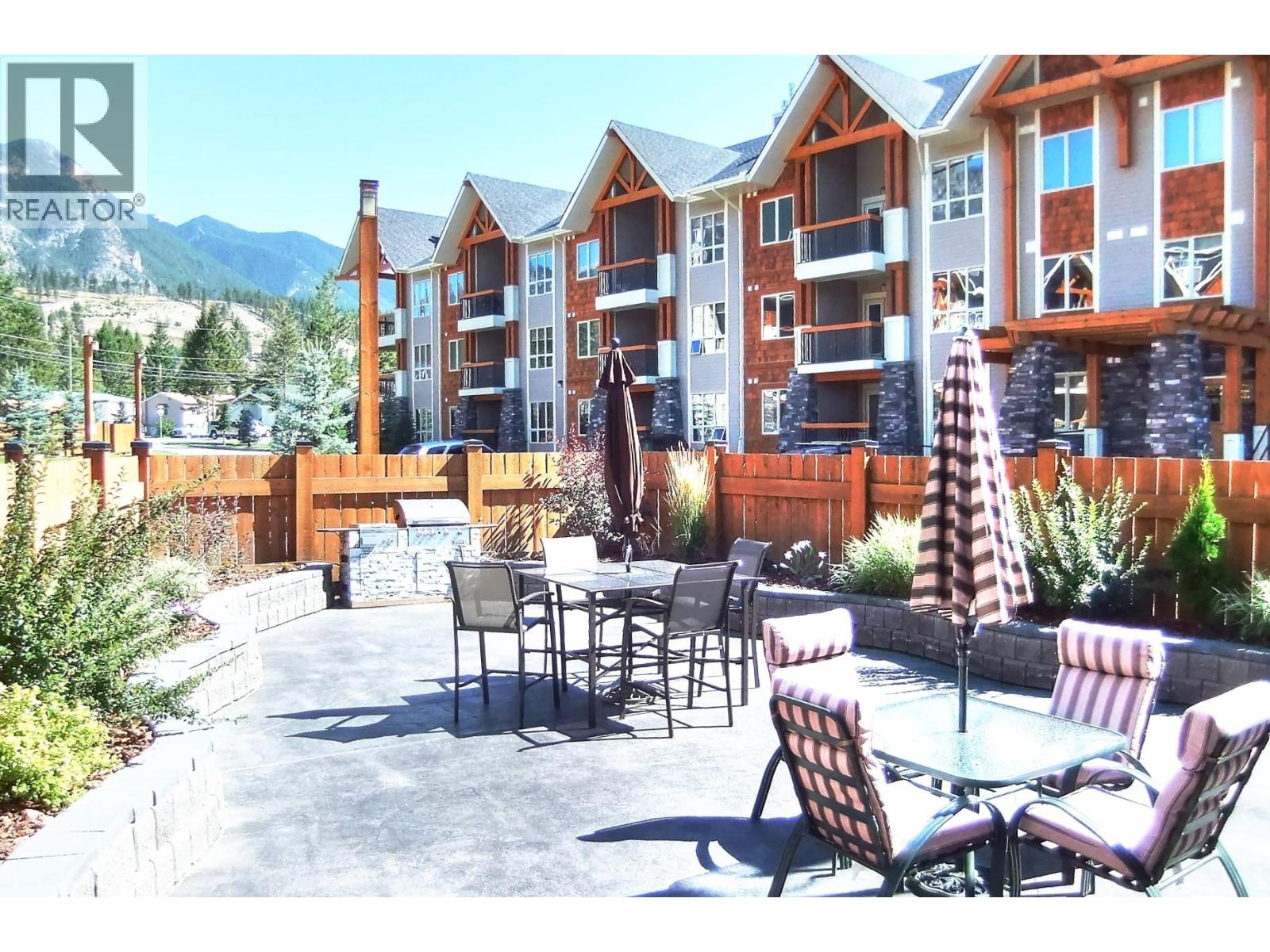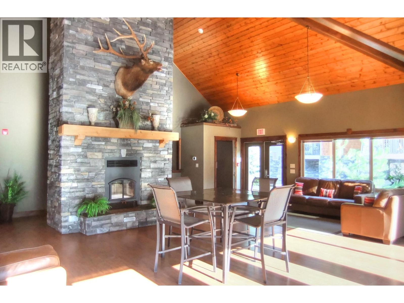 Welcome to your new retreat in the mountains! Experience the perfect blend of comfort and luxury in this stunning ground-level condo at Sable Ridge. This fully furnished, two-bedroom, two-bathroom unit is designed for both relaxation and entertaining, featuring an open-concept kitchen, dining, and living area. The sleek gas fireplace with its beautiful stone hearth creates a warm and inviting atmosphere, complemented by soaring 9-foot ceilings and gorgeous wood and stone details throughout. Furnace/AC 2023. The spacious primary bedroom includes a four-piece ensuite, and a versatile den provides extra space for work or guests. Additional sleeping is available on the living room pull-out couch, ensuring plenty of room for family and friends. Step outside onto your private, slightly elevated balcony, offering a quiet, serene view of the clubhouse, terrace, and seasonal pool. The year-round gazebo hot tub is just steps away, perfect for unwinding after a day of adventure.1 Enjoy exclusive access to the clubhouse, with a kitchen available for private events, along with the convenience of one indoor heated parking stall and a storage locker. Located within walking distance of Radium Hot Springs' main street, you’re just moments from dining, shopping, and community events.2 Spend your days exploring the best of the Rockies—whether it's skiing, golfing, biking, or hiking—and come home to your personal oasis. This isn't just a condo; it's your gateway to the mountain lifestyle. (id:4069)