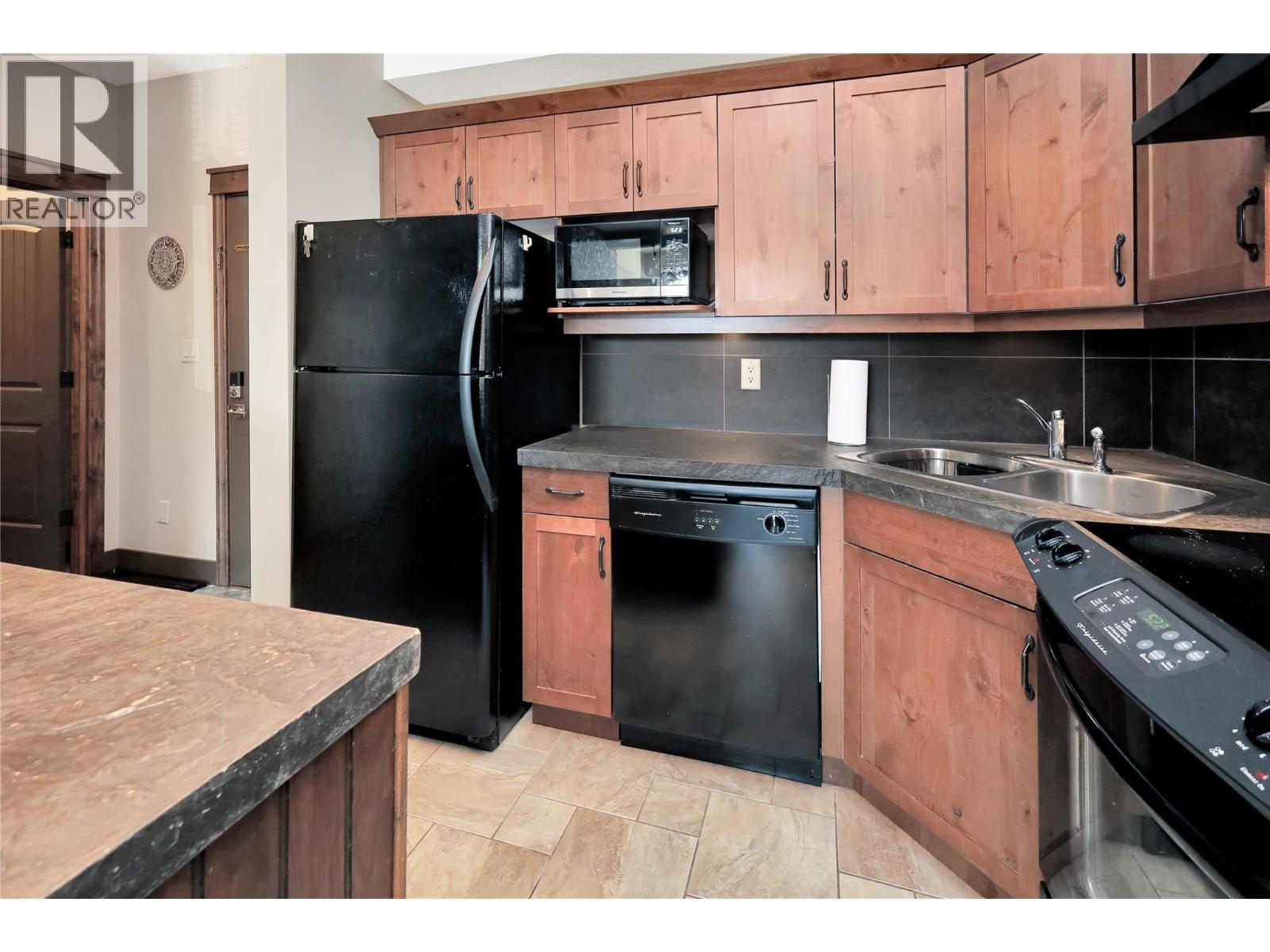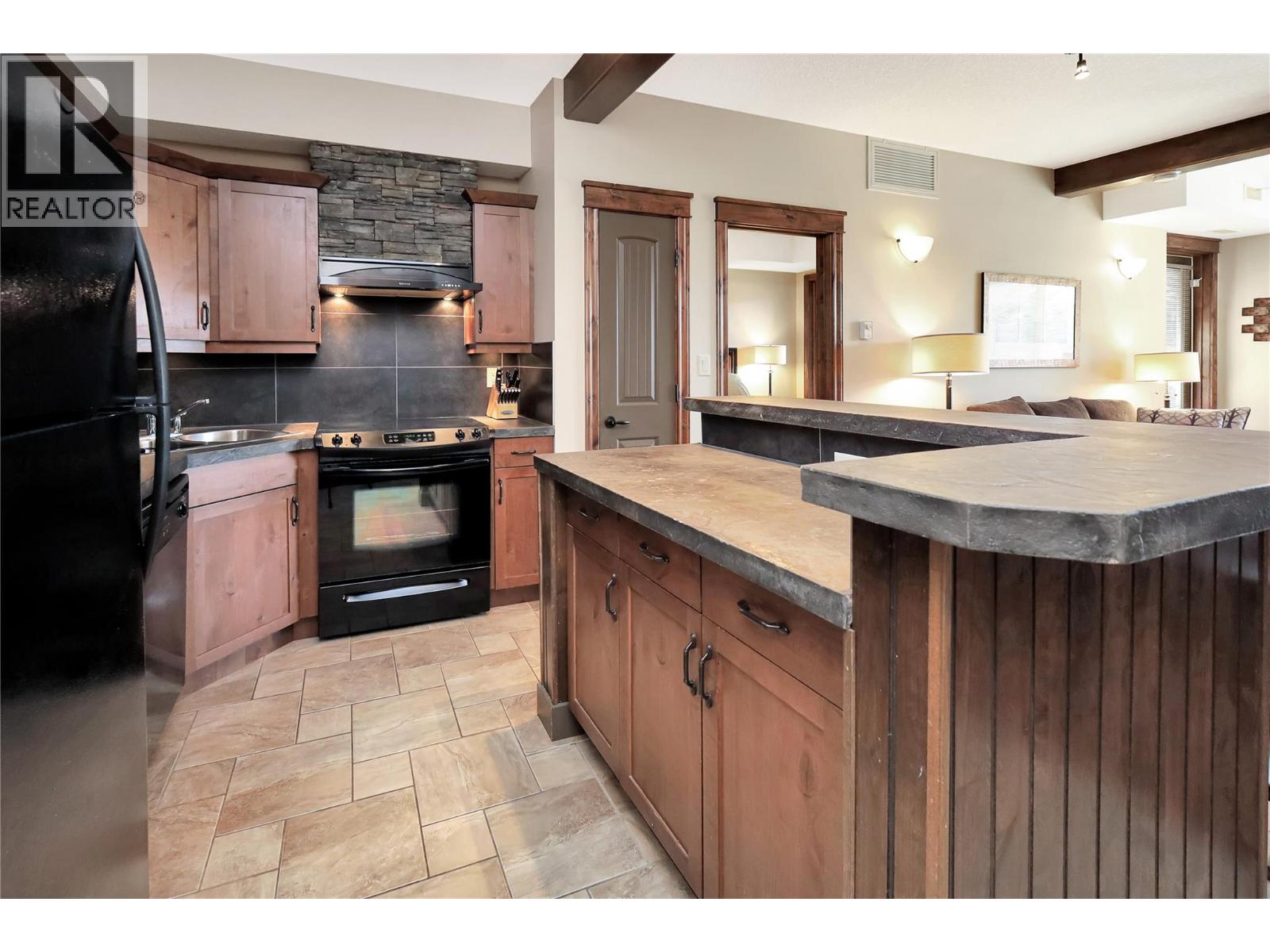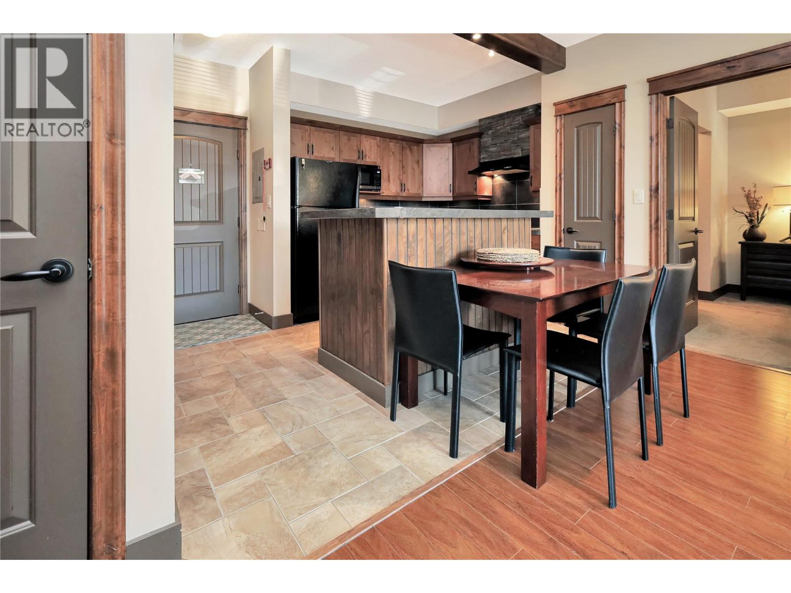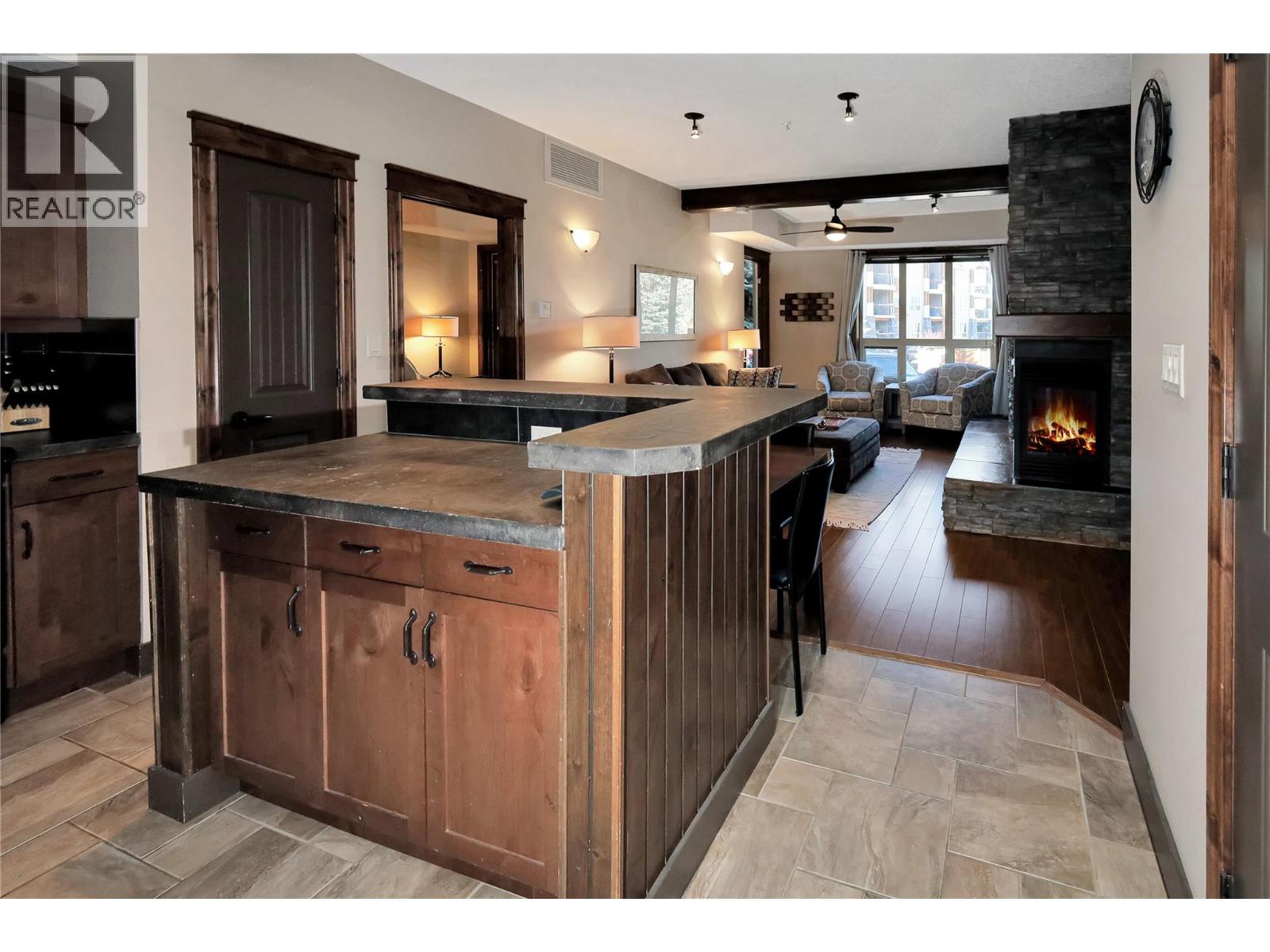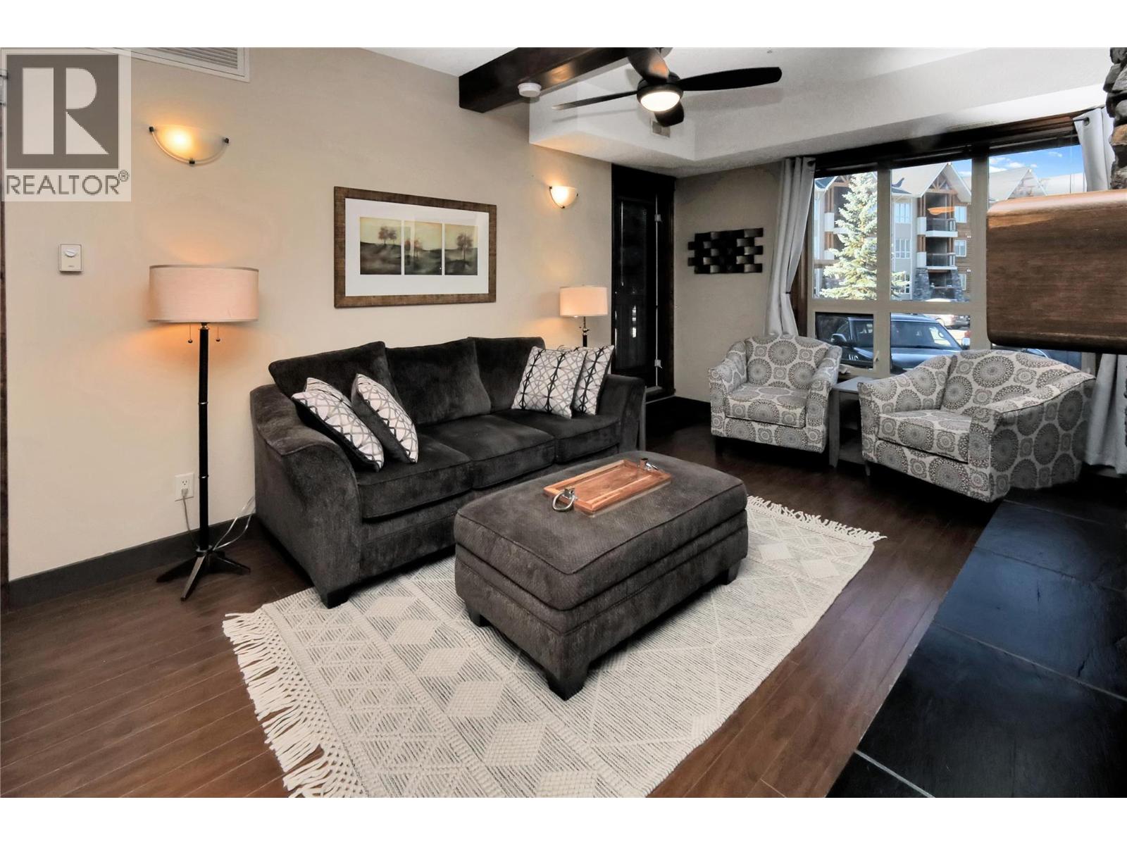 Welcome to your new retreat in the mountains! Experience the perfect blend of comfort and luxury in this stunning ground-level condo at Sable Ridge. This fully furnished, two-bedroom, two-bathroom unit is designed for both relaxation and entertaining, featuring an open-concept kitchen, dining, and living area. The sleek gas fireplace with its beautiful stone hearth creates a warm and inviting atmosphere, complemented by soaring 9-foot ceilings and gorgeous wood and stone details throughout. Furnace/AC 2023. The spacious primary bedroom includes a four-piece ensuite, and a versatile den provides extra space for work or guests. Additional sleeping is available on the living room pull-out couch, ensuring plenty of room for family and friends. Step outside onto your private, slightly elevated balcony, offering a quiet, serene view of the clubhouse, terrace, and seasonal pool. The year-round gazebo hot tub is just steps away, perfect for unwinding after a day of adventure.1 Enjoy exclusive access to the clubhouse, with a kitchen available for private events, along with the convenience of one indoor heated parking stall and a storage locker. Located within walking distance of Radium Hot Springs' main street, you’re just moments from dining, shopping, and community events.2 Spend your days exploring the best of the Rockies—whether it's skiing, golfing, biking, or hiking—and come home to your personal oasis. This isn't just a condo; it's your gateway to the mountain lifestyle. (id:4069)