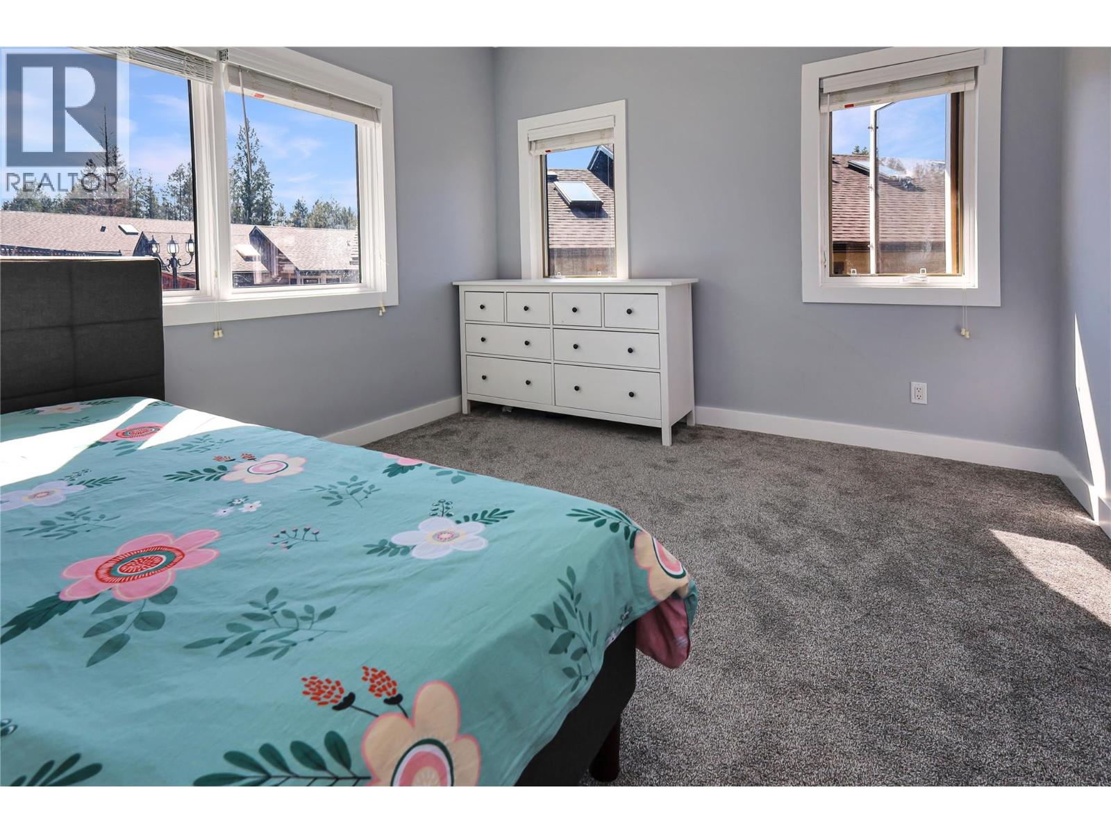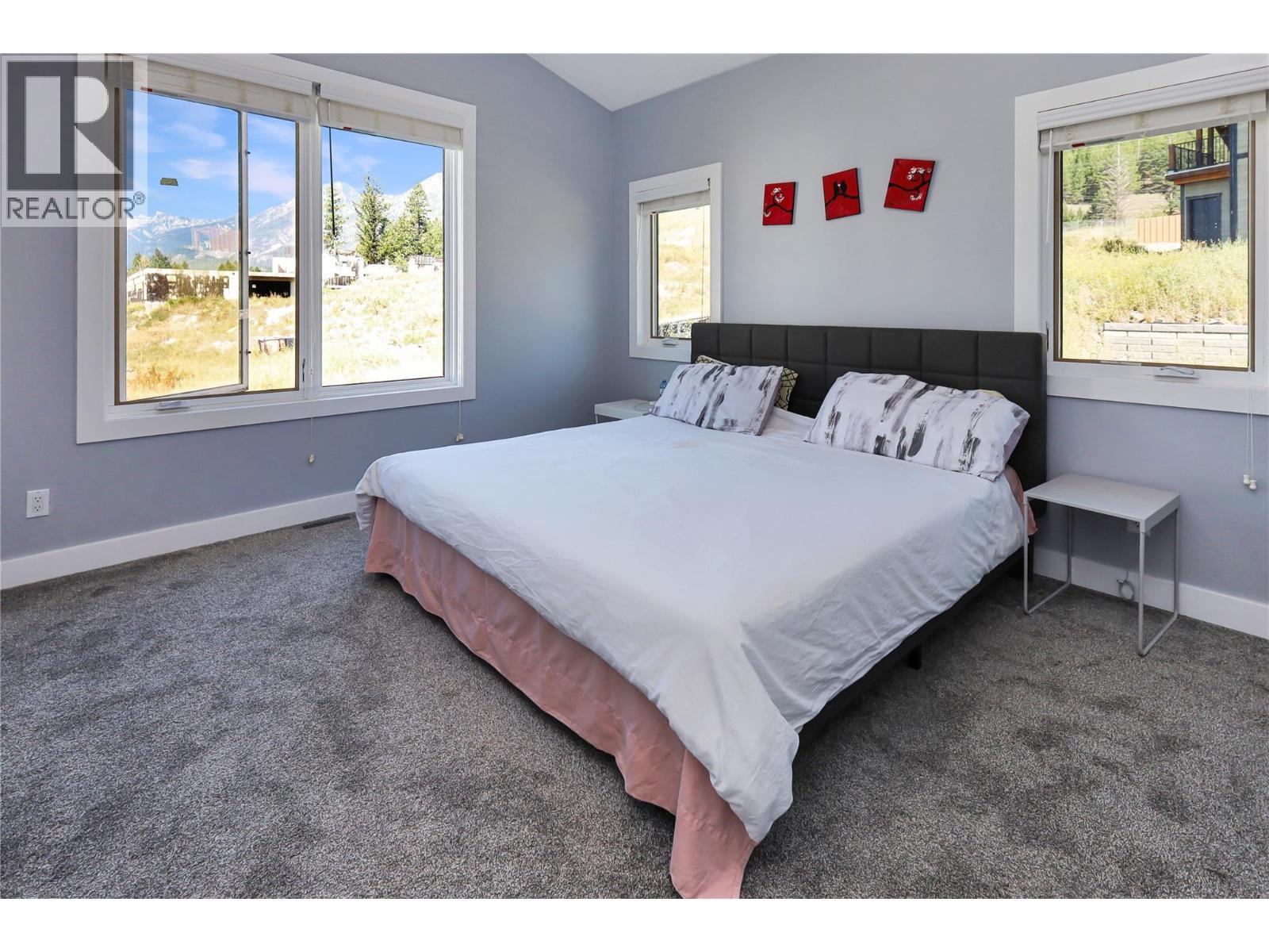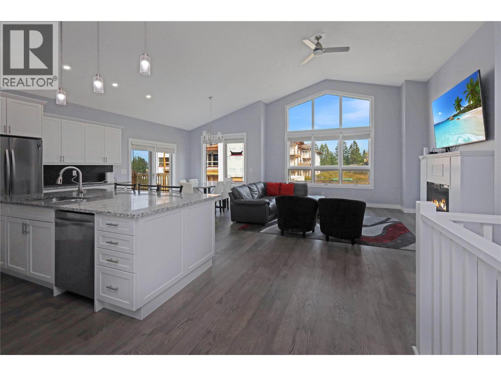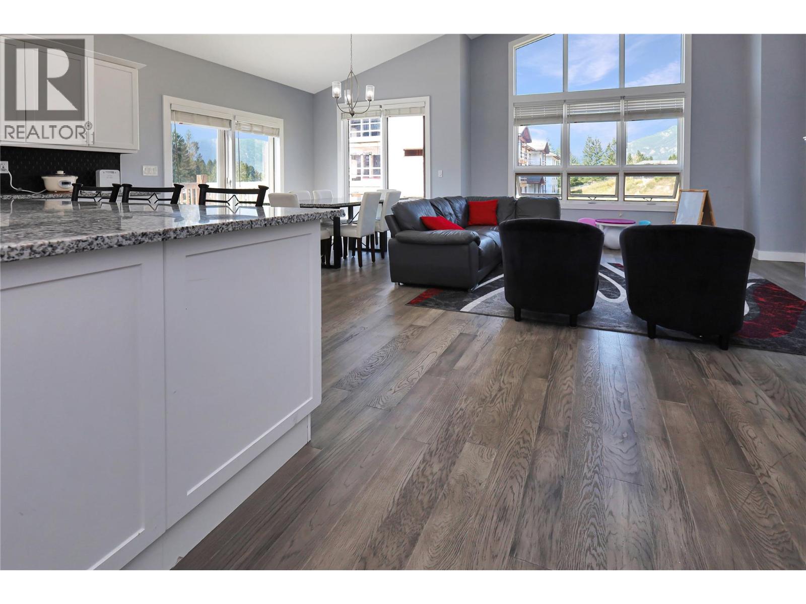 Imagine coming home to this stunning rancher-style bungalow, where you can enjoy the ease of main-floor living. This home is designed for comfort and elegance with soaring vaulted ceilings and expansive windows that fill the open-floor plan, dining, living room and kitchen areas with natural light. The focal point of the living room is a contemporary, electric fireplace, perfect for taking the chill off on cool mountain evenings. The main floor features two bedrooms, including a luxurious primary suite with a five-piece ensuite bathroom, complete with a jetted tub, a stand-alone shower, and a spacious walk-in closet. A guest bathroom, laundry room, and convenient garage access are also located on this level. The home features engineered hardwood flooring in the main living spaces and plush, quiet carpeting in the bedrooms. Downstairs, you'll find two additional bedrooms and a third bathroom. The lower level also has a spacious rec room with a walk-out to a private deck and a versatile bonus room that could serve as an office or a study. Outside, the home is situated in a private cul-de-sac and has a double-car garage. The school bus stop is a 3-minute walk away. The Edgewater Elementary School is a 10-minute ride. For a nominal annual fee, you and the family can access the adjacent resort's private indoor pool, tennis courts, and indoor racquetball and basketball courts. Don’t just imagine, make it happen! Call your agent today and make this your home. (id:4069)
