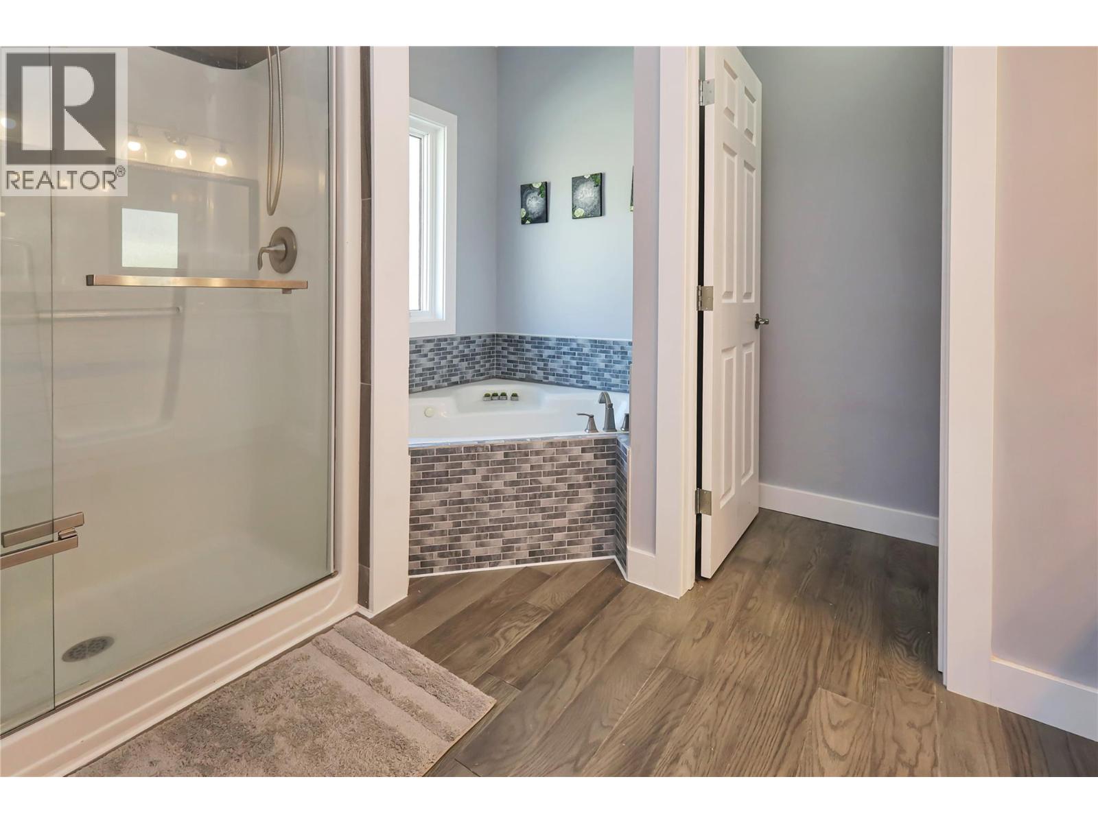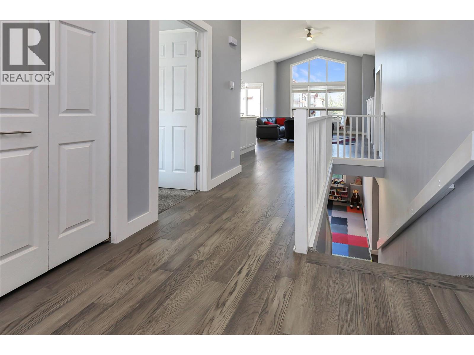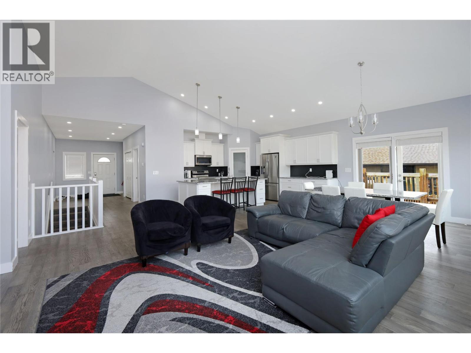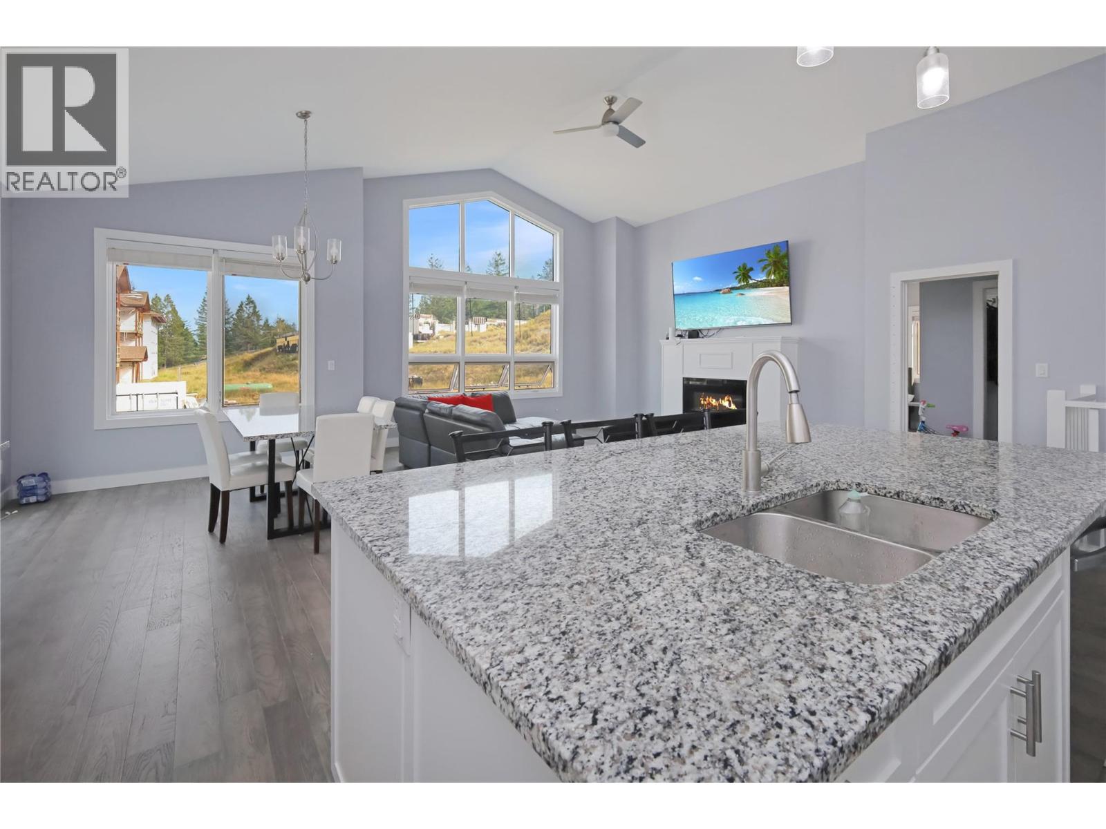 Imagine coming home to this stunning rancher-style bungalow, where you can enjoy the ease of main-floor living. This home is designed for comfort and elegance with soaring vaulted ceilings and expansive windows that fill the open-floor plan, dining, living room and kitchen areas with natural light. The focal point of the living room is a contemporary, electric fireplace, perfect for taking the chill off on cool mountain evenings. The main floor features two bedrooms, including a luxurious primary suite with a five-piece ensuite bathroom, complete with a jetted tub, a stand-alone shower, and a spacious walk-in closet. A guest bathroom, laundry room, and convenient garage access are also located on this level. The home features engineered hardwood flooring in the main living spaces and plush, quiet carpeting in the bedrooms. Downstairs, you'll find two additional bedrooms and a third bathroom. The lower level also has a spacious rec room with a walk-out to a private deck and a versatile bonus room that could serve as an office or a study. Outside, the home is situated in a private cul-de-sac and has a double-car garage. The school bus stop is a 3-minute walk away. The Edgewater Elementary School is a 10-minute ride. For a nominal annual fee, you and the family can access the adjacent resort's private indoor pool, tennis courts, and indoor racquetball and basketball courts. Don’t just imagine, make it happen! Call your agent today and make this your home. (id:4069)