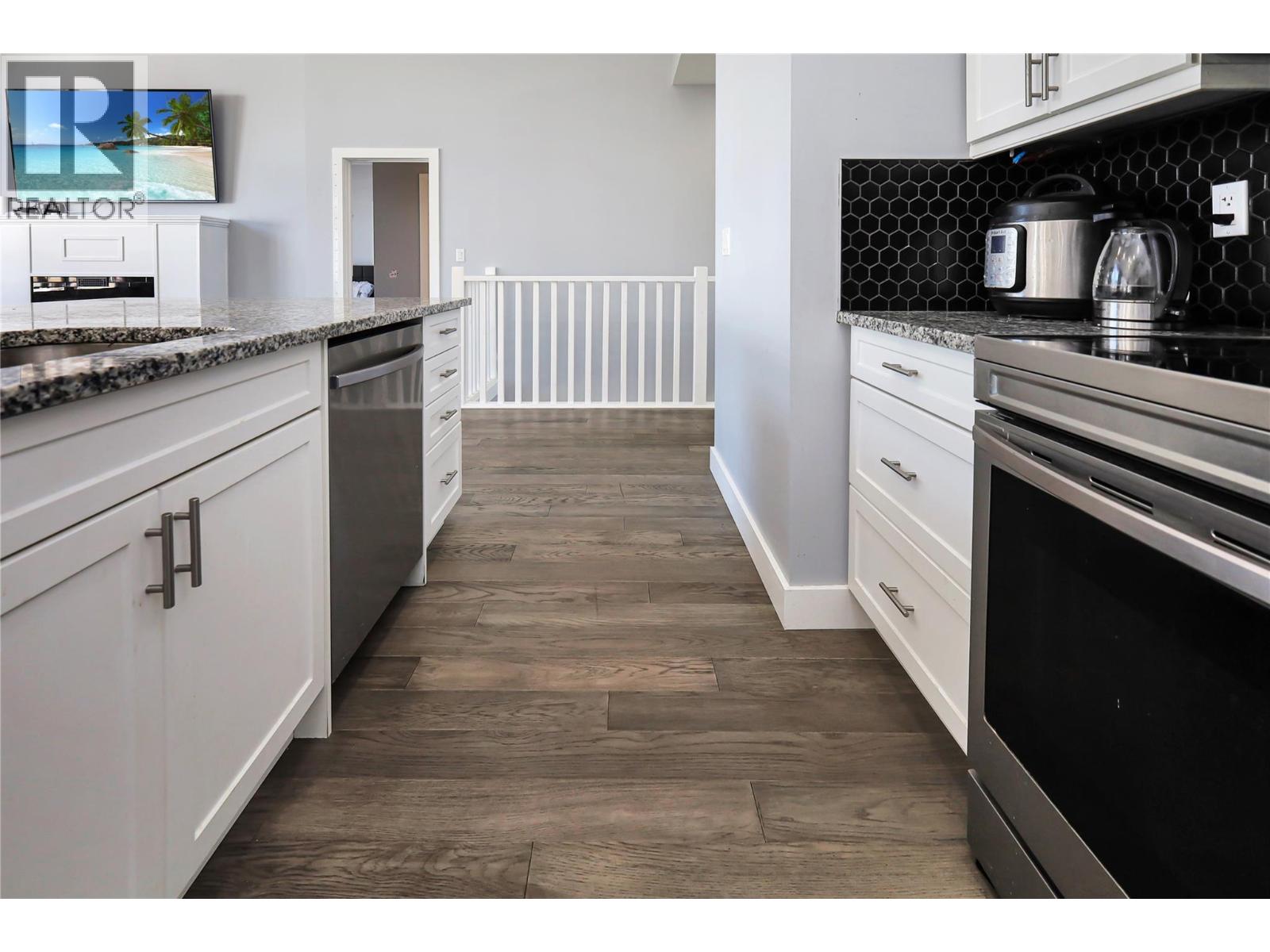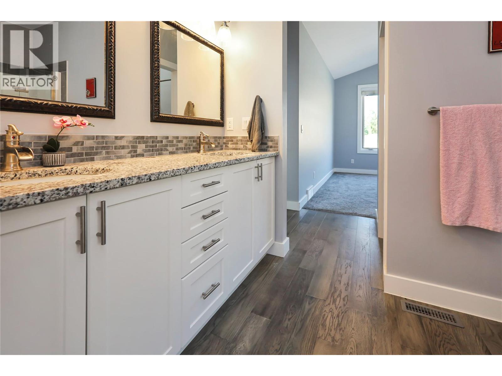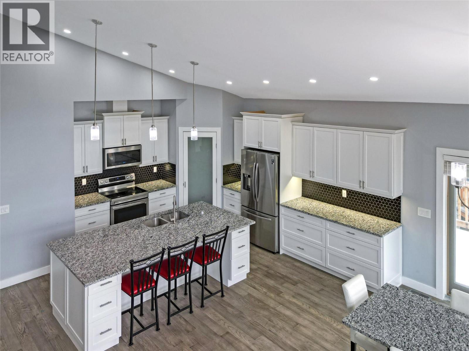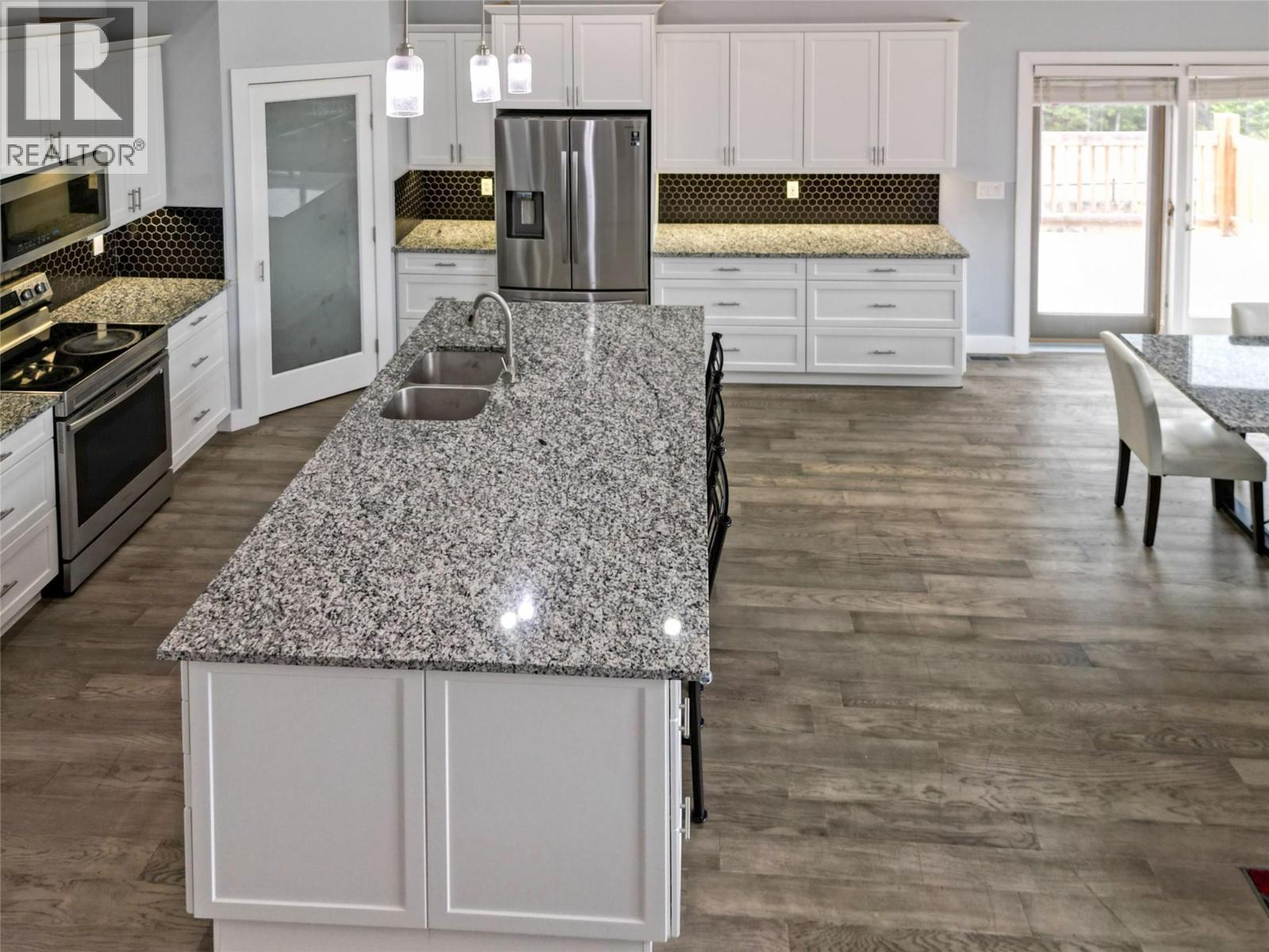 Imagine coming home to this stunning rancher-style bungalow, where you can enjoy the ease of main-floor living. This home is designed for comfort and elegance with soaring vaulted ceilings and expansive windows that fill the open-floor plan, dining, living room and kitchen areas with natural light. The focal point of the living room is a contemporary, electric fireplace, perfect for taking the chill off on cool mountain evenings. The main floor features two bedrooms, including a luxurious primary suite with a five-piece ensuite bathroom, complete with a jetted tub, a stand-alone shower, and a spacious walk-in closet. A guest bathroom, laundry room, and convenient garage access are also located on this level. The home features engineered hardwood flooring in the main living spaces and plush, quiet carpeting in the bedrooms. Downstairs, you'll find two additional bedrooms and a third bathroom. The lower level also has a spacious rec room with a walk-out to a private deck and a versatile bonus room that could serve as an office or a study. Outside, the home is situated in a private cul-de-sac and has a double-car garage. The school bus stop is a 3-minute walk away. The Edgewater Elementary School is a 10-minute ride. For a nominal annual fee, you and the family can access the adjacent resort's private indoor pool, tennis courts, and indoor racquetball and basketball courts. Don’t just imagine, make it happen! Call your agent today and make this your home. (id:4069)