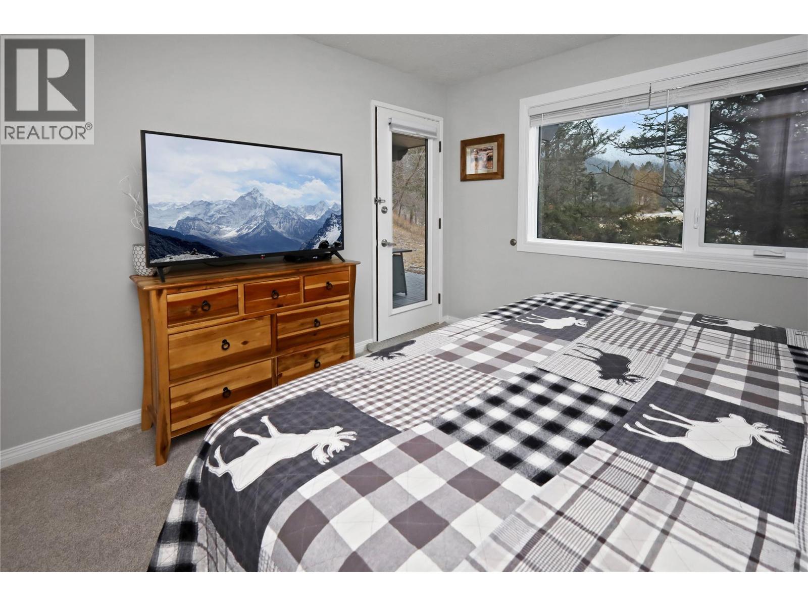 Golf every day during the warmer months and ski during the winter! Bordering the Radium Golf Course, this charming, modern, 2 beds & 2 bath beautifully finished corner condo, is waiting for the discerning buyer. With a ground-level entrance and convenient access driveway to the front door, makes it easy to unload the kids and groceries. The outdoor parking lot has winter plug-ins, a.k.a. block heaters for your vehicle in case the temperature dips below freezing. The main floor open design, features a bright living room, dining area, well-appointed kitchen, a 3-piece bathroom, and a covered balcony. Sit and sip your favourite beverage while gazing at the stunning mountains and golf course from the balcony and living room. The lower level has two cozy bedrooms, a 4-piece bathroom, and a family/recreational room currently set up for extra sleeping space. The primary and guest bedrooms have large windows and patio doors. There's ample closet space in each room, to keep everything tidy. The basement patio is accessed from each bedroom and bordered by mature trees for privacy. The Radium Resort Condos are conveniently located between The Village of Radium Hot Springs and Invermere. Situated along the Radium Golf Course, only minutes to the famous Hot Pools, the Radium Village amenities, restaurants, shops, gas stations and groceries. This fully-furnished, stylish and comfortable condo awaits your arrival. Relax and restore in your own private get-away! (id:4069)